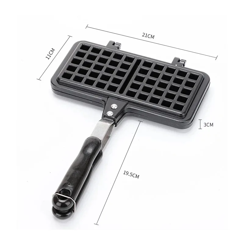 This waffle baking tool adopts aluminum alloy, safe, anti-rust, sturdy and long lasting.