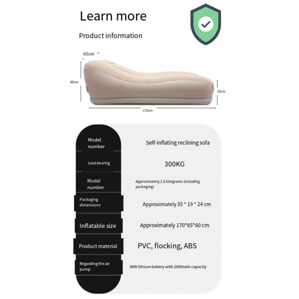 Bu şişme şezlong, konfor ve rahatlığın mükemmel birleşimidir.Yumuşak, cilt dostu malzemelerle hazırlanmış, rahat bir dinlenme alanı sunuyor, ister evde, ister arka bahçede, ister kamp gibi açık hava gezilerinde.