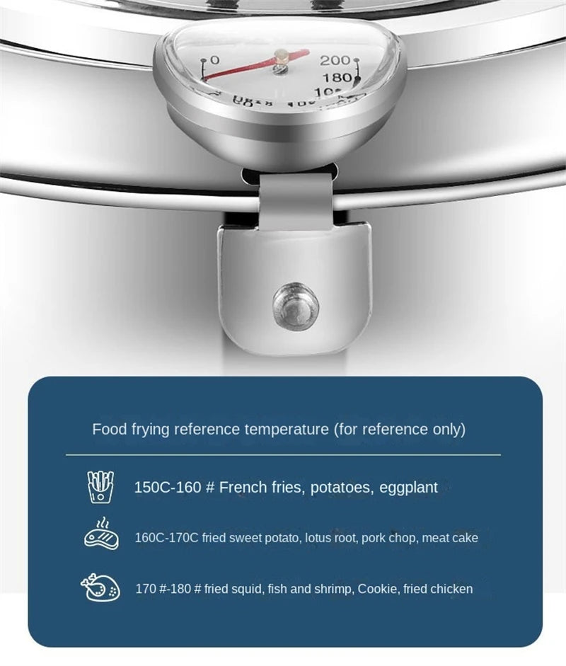 Japanese Deep Frying Pot with a Thermometer and a Lid 304 Stainless Steel Kitchen Tempura Fryer Pan 20 24 cm