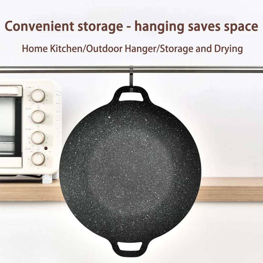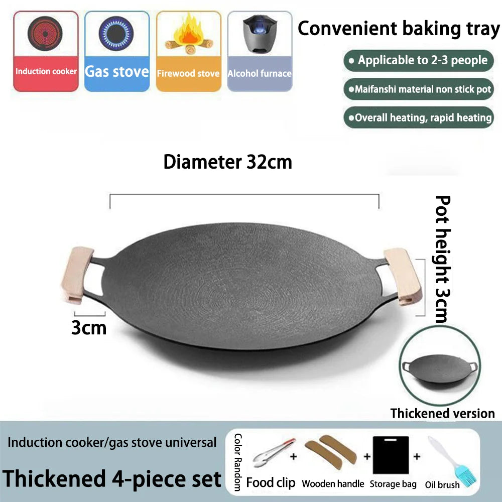 Korean BBQ Grill Pan Smokeless Round Griddle Pan Barbecue Plate Indoor Outdoor Grilling Frying Pan with Heat-resistant holder