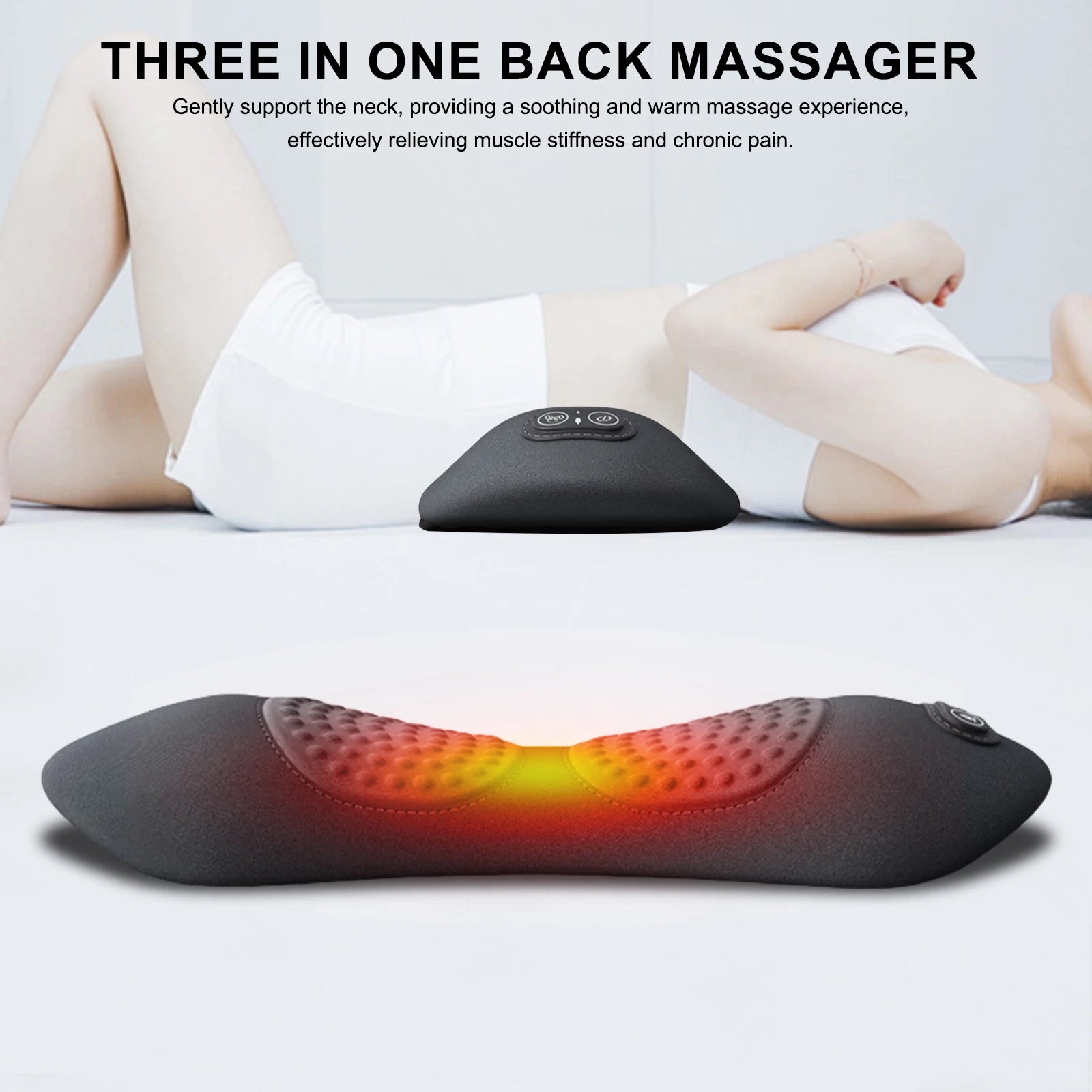 3 in 1 Electric Lumbar Support Pillow with Adjustable Height Back Support Pillow with Heat Memory Foam Back Pillow for Bed and Chair Features: 1.3-in-1 Back Therapy Solution: Experience our innovative electric lumbar support pillow that combines gentle traction to relieve spinal pressure, deep vibration to melt away knots, and soothing heat therapy. Enjoy neck, shoulder, and back tension relief at home. 2.Ergonomic Support & Premium Foam: Built with high-density memory foam back pillow, professionally molded to fit your spine's natural curve. This firm yet comfortable design ensures ideal pressure distribution for optimal support during every relaxation session. 3.Vibration & Heat for Relaxation: Dual-action therapy delivers targeted warmth and customizable vibration to relax stiff muscles and enhance circulation. Our advanced back massager offers pinpoint relief in the neck, shoulders, and upper or lower back. 4.Portable Relief Anywhere: This lightweight waist pillow is your go-to portable solution for relief. Suitable for travel, office use, or relaxing at home, it turns any chair or car seat into a soothing comfort zone for on-the-go back care. 5.Quiet & Easy Maintenance: Near-silent operation provides peaceful therapy - ideal for work or sleep. The removable, machine-washable cover makes hygiene simple, keeping your back support pillow fresh for long-lasting core comfort.