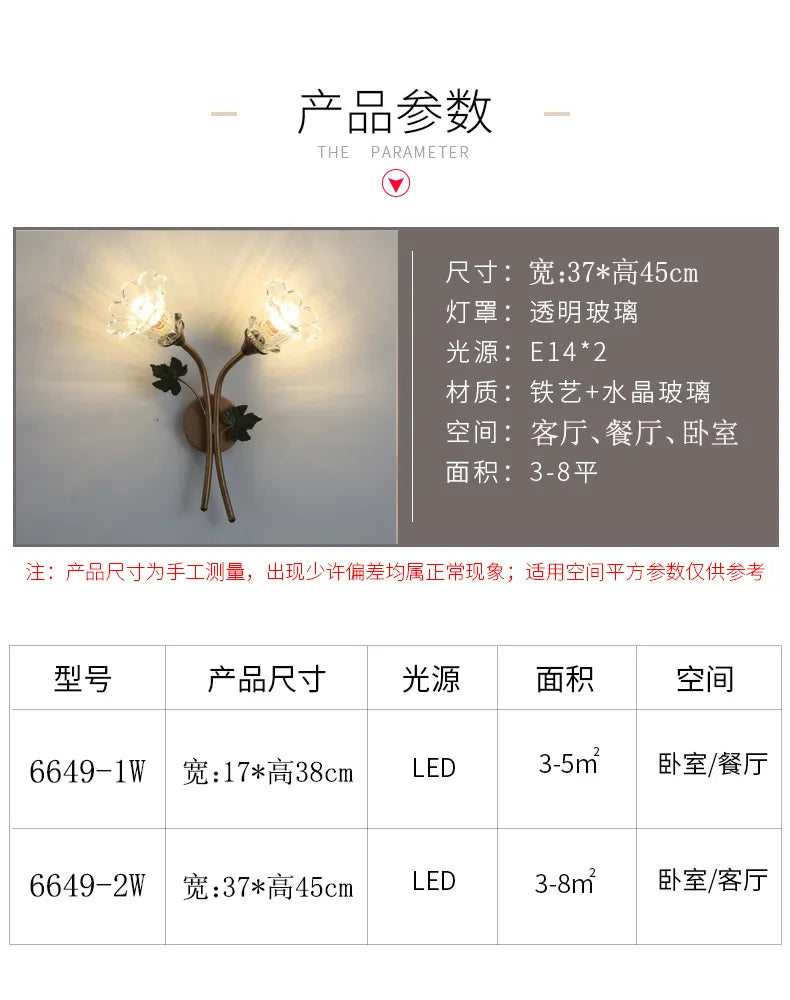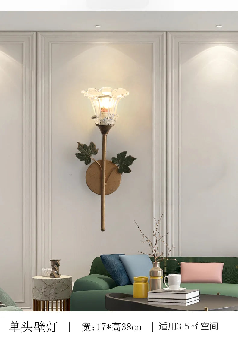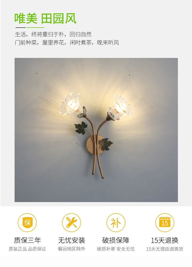 American Wall Lamp - Modern Minimalist & French Rustic Floral Design for Living Room/Bedroom Headboard